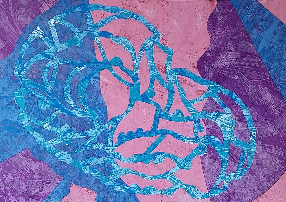 Collage, created with found and monoprinted papers, on board