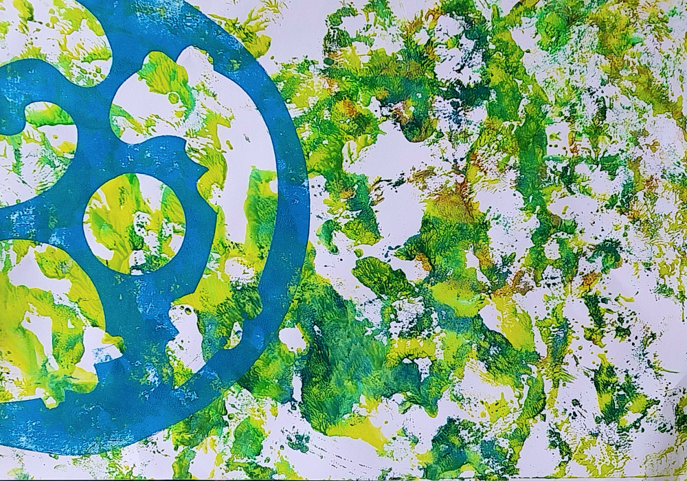 Ghost print over monoprint on paper