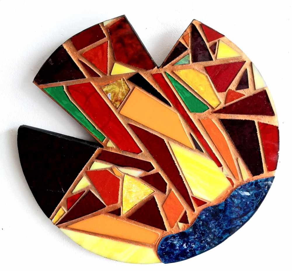 Mosaic created with recycled, painted, coloured and stained glass