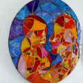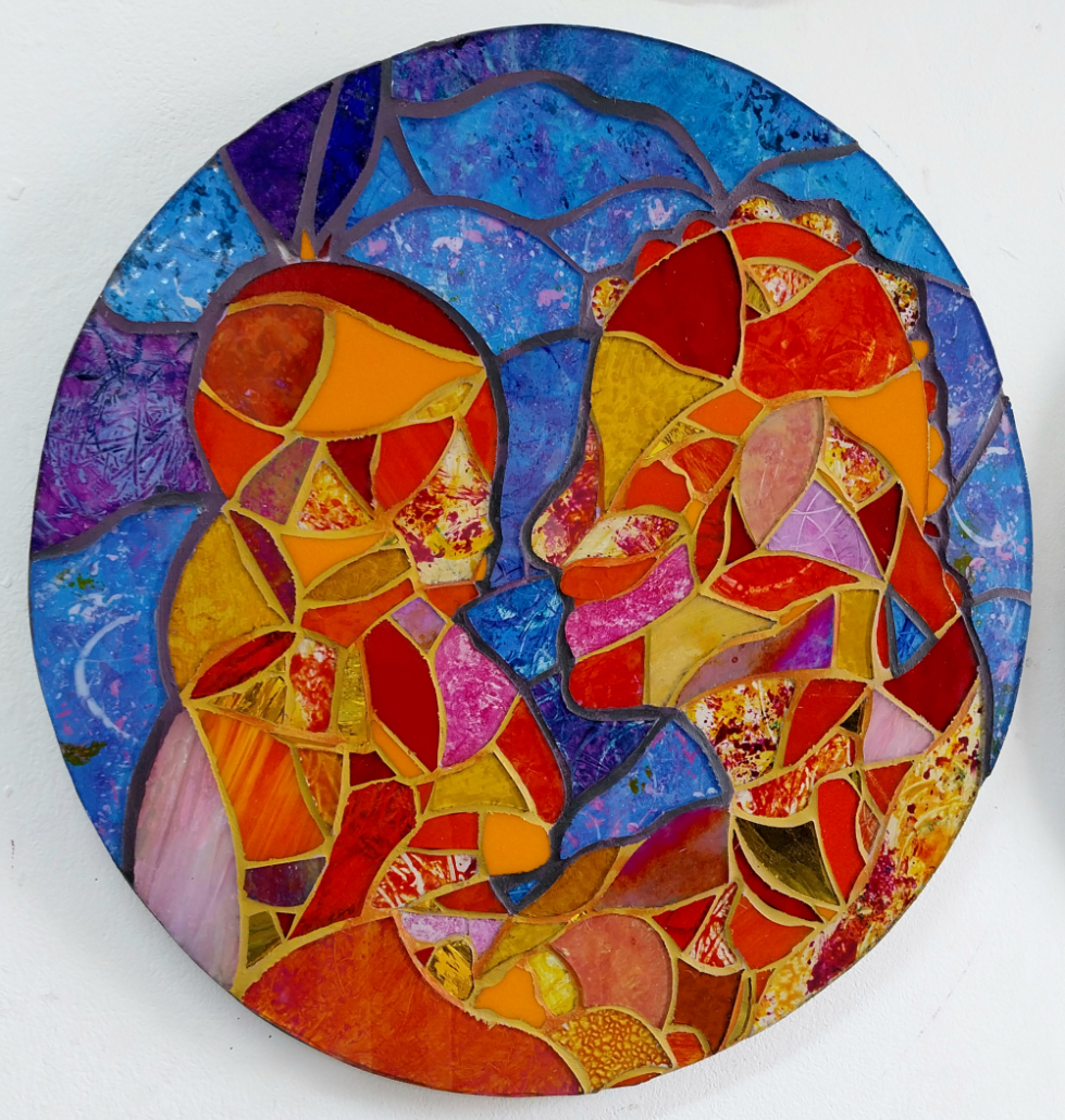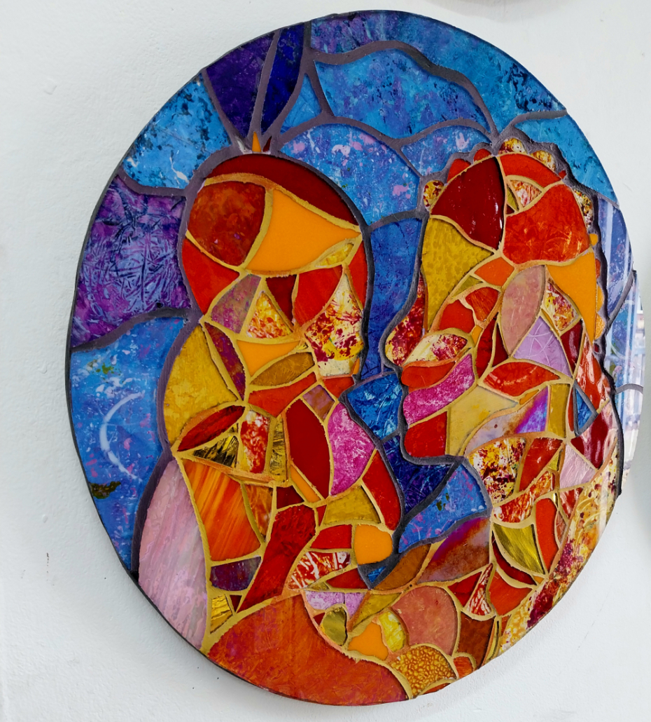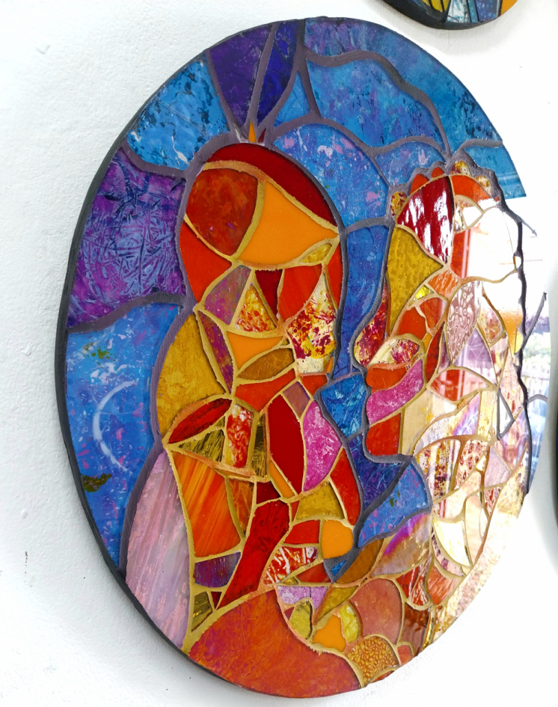 Mosaic created with recycled, stained and painted glass